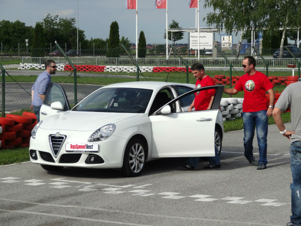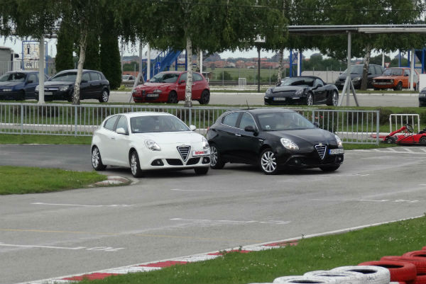 Na raspolaganju su nam bile dve Giuliette – 1.4 TB od 170 ks i 2.0 JTDm, takođe od 170 ks, pa je na licu mesta bilo moguće uporediti dva turbo motora sa različitim pogonskim gorivom. Doduše, kartnih staza nije baš idealno mesto za tako nešto, ali je zato sjajna za test svih elektronskih pomagala poput ABS i VDC, kao i Q2 diferencijala. Prolasci kroz krivine su iznenađujuće sigurni, čak i uz škripu guma, pa nije ni čudo što je ovaj automobil proglašen za najsigurniju Alfu ikada. O kočnicama ne treba trošiti mnogo reči, osim da ih je teško ili gotovo nemoguće pregrejati i da omogućavaju izuzetno kratak zaustavni put.